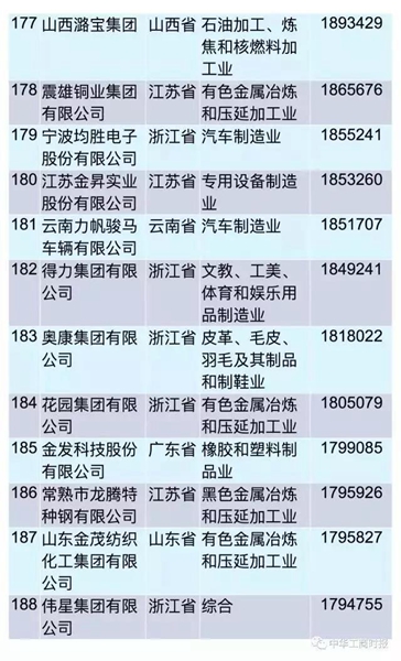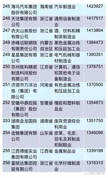 2017中國民營(yíng)企業(yè)制造業(yè)500強出爐,濟源鋼鐵上榜(位列287位)
